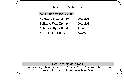 Use the Serial Link Configuration Menu to configure the Catalyst 3000 to communicate with the console via modem. The default baud is 9600.