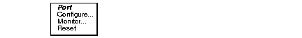 You can also use the right mouse button to get to a popup menu that allows you to configure or monitor a device, card, or port. For example, if you are using an AS5200 card and need port information, select a port on the display and click the right mouse button. The following popup menu appears: