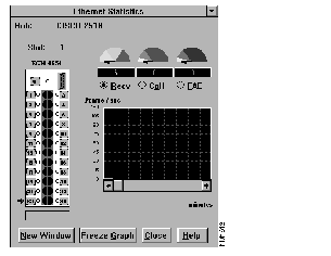 On a Cisco 2518, the Control Panel popup menu includes a choice for Eth Statistics. The Ethernet Statistics window, shown in Figure 2-12, displays real-time, port-level statistical information.