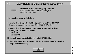 If you have backups of the customized SYSTEM.INI and OVWIN.INI files, use them to overwrite the default files installed by Microsoft Windows and HP OpenView. Otherwise, follow the procedure in the previous section, "Installing Cisco Hub/Ring Manager," to restore the network management station to operating condition.
