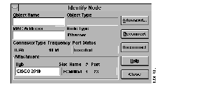 The Identify Node dialog box provides information on an occupied port of the router/hub. From the Identify Node dialog box, you can only view information; you cannot alter any of the text fields.