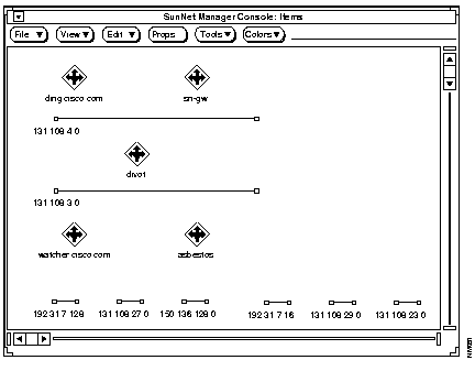 A router can have a number of interfaces. As the router is added to the view, it is also added to a network (represented by a cloud icon in SNM Console), and one for each router interface (with subnet mask applied). These networks are created in the current view as needed. If you choose to manage these subnets, you can use the SunNet Manger Discover tool to identify the devices in the subnet.