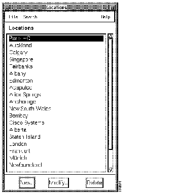 The Locations Window represents a reservoir for network addresses of people, the location of network devices, and any other network-associated matter. The information you enter in the Locations window goes into a central repository called Chooser List for locations. With the Chooser List, you can add or update locations data whenever you work with the Details People window or the Device Location window.