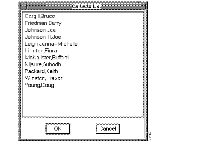 From the People>Phones window, you can click on one of the command buttons to add or modify information about a particular support person. To add or modify information about the individual's telephone number, select one of the corresponding commands from the Edit menu.