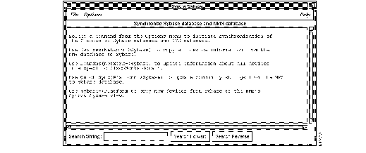 or Glyph Tools>CW - Sync w/Sybase | Synchronize the SunNet Manager and Sybase databases. CiscoWorks maintains data in the Sybase database, whereas each SunNet Manager maintains its own database. Sync w/Sybase ensures that device data from the SunNet Manager database is in the Sybase database (Sync w/Platform) and vice versa. Generally, synchronize the databases whenever new devices are added to your network. Use Sync Selected to add individual devices. |