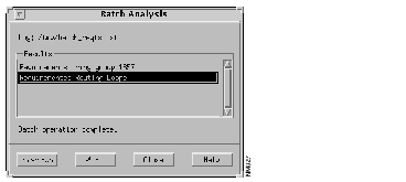 The Batch Analysis window is displayed when you select an action you want performed, and if necessary the device/link(s) from the Results list in the Clipboard window, and then click on the Perform Action button. Figure 3-11 is an example of the Batch Analysis window that is displayed when the Analyze each requirement set batch analysis action option in the Clipboard window was selected and the Perform Action button was clicked.