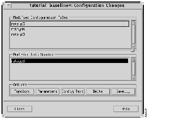 The components of this window are described below. Click on the Close button to dismiss the Configuration Changes window. Provided you have access to a MosaicTM or NetscapeTM HTML browser, clicking on the Help button displays documentation about the Configuration Changes window. The HTML browser specified by the ECSP_HELPVIEWER environment variable is used for this purpose.