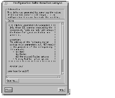 netsys3 Ethernet0/0 interface were modified in the netsys3 Interface Parameters window, an entry for the netsys3 router was placed in the Configuration Changes window's Modified this Session list. Upon selecting the netsys3 entry and clicking on the Delta button, the Configuration Delta-Baseline window, shown in Figure 7-11 is displayed. Click on the Save As button to save the newly generated IOS router commands to a file. See "Save Configuration Information Window" for detailed information about the Save Configuration Information window.