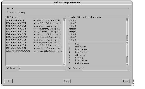 The Add SAP Requirements window, partially shown in Figure 7-6, allows you to check whether a path exists between the provider of a SAP service and a router that is to contain a SAP Services Table. The router containing the SAP Services Table broadcasts to the other routers on the network its ability to gain access to the SAP services provided by SAP servers. Therefore, in order for the router containing the SAP Services Table to be able to broadcast its ability to gain access to the SAP services provided by a SAP server, a connection between them must exist.