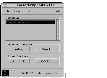Upon returning from loading a baseline and creating the initial baseline scenario, the updated Connectivity Tools window, shown in Figure 2-2, is displayed.