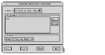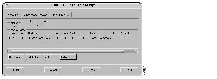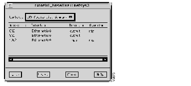 The IPX Routing Table window is displayed when you click on the IPX Routing Table button in the Router Configuration window. The IPX Routing Table window shown in Figure 10-6, displays the IPX Routing Table entries known to the netsys3 router. This table is constructed from the information contained in the baseline router configuration files. Routing Table entries may not be edited from this window. Double-clicking on a Routing Table entry highlights the next hop router in the Topology window.