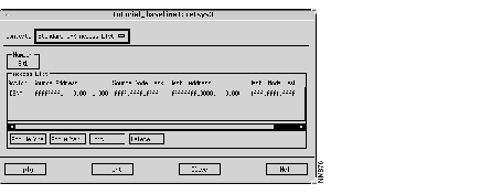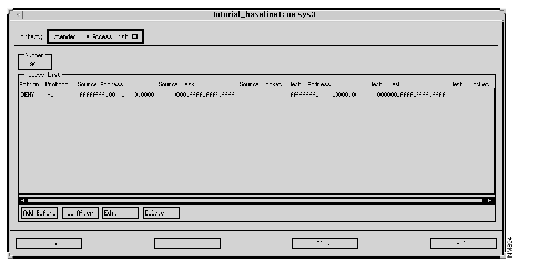 Click on this button to switch context to the corresponding Filter Interface List window (SAP or Network.) An IPX access list number must be displayed, via the selection of one of the Filter Interface List entries, for the context switch to occur. See "IPX SAP Filter List Window" for a detailed description of the IPX SAP Filter List window components. See "IPX Standard Network Filter List Window" for a detailed description of the IPX Network Filter List window components.