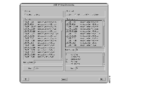 The Add IP Requirements window, shown in Figure 6-4, is displayed. New requirements in the batch_test connectivity requirements set are created using this window.