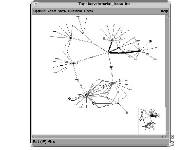 By default, the tutorial_baseline topology is displayed as a campus IP view in the Topology window, as shown in Figure 3-2.