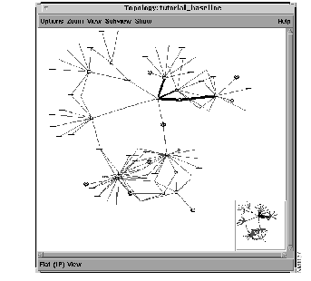 This chapter presents a tutorial describing how to display a baseline topology and how to use the features available in the Topology window. The Topology window presents a visual representation of a network represented by a baseline. The Topology window is used in conjunction with other Connectivity Tools features to accomplish the tasks described in this tutorial. Refer to "Creating and Opening a Baseline" for information on how to create and load a baseline into the baseline model.