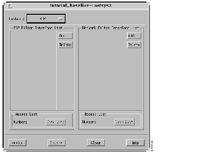 The Edit IPX Network Filter List window, shown in Figure 10-15, is displayed. Create a network filter denying routing updates through the fddi3/0 interface.