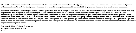 For printed documentation of Cisco IOS Release 10.3 access and communication server software features, refer to the Cisco IOS Release 10.3 Access and Communication Servers Configuration Guide Addendum and Access and Communication Servers Command Reference Addendum. These addenda include Release 10.3 features and supplement the information in the following manuals: