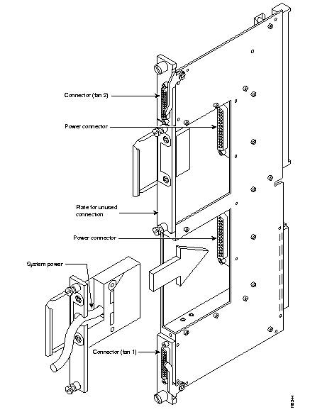 Step 8 The folded ribbon cables that connect the upper and lower backplanes pass through a cut-out space in the card cages. The cables connect to two, 100-pin connectors on the front of each backplane. See Figure 3-5. If NPM cards are present, these and possibly other front cards need removing prior to ribbon cable installation.