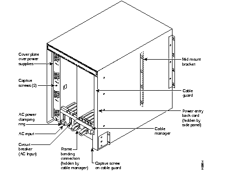 For an IGX 8 to use an AC power source, an AC power supply system is necessary. The IGX 8 power supply housing holds up to four, 400-Watt power supplies. The AC system provides the system with -48 VDC from 100 to 240 VAC input. The AC power supply housing is between the card cage and the side wall of the node. The IGX 8 has one or, with AC redundancy, two AC power inputs.