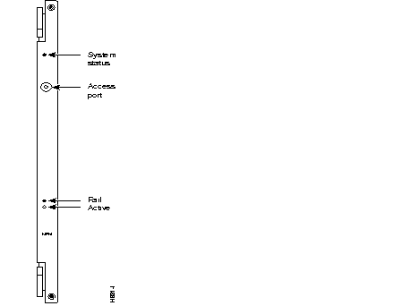 The faceplate of the NPM has a green ACTIVE LED and a red FAIL LED. See Figure 3-2 . The NPM monitors its own activity and, if a failure is detected, the FAIL LED is lit. If the node has redundant NPMs, the on-line NPM is indicated by the lit ACTIVE LED, while the standby NPM has no lit indicators. In addition to the status LEDs on the NPM faceplate, information on any NPM can be displayed at a terminal by executing the dspcd command.