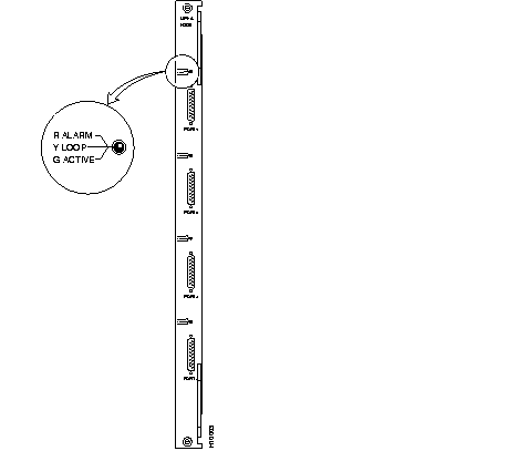 | FAIL light (red) | Indicates that the card has failed self-test (an error occurred). Resetting the card with the resetcd f command is suggested first. If the LED comes on again, call Cisco Customer Engineering. |