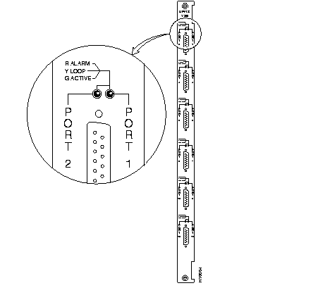 | LOOPBACK push-button | When pressed, toggles through the three loopback states on the port whose light is on. These states are: no loopback, local loopback, remote loopback. |