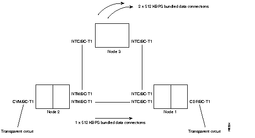 The maximum number of channels that can carry LDCELP data is 16, so not all possible channels on a T1 or E1 line are supported if all channels are using LDCELP. To support the other channels, the UVM can pass-through the remaining channels to a second UVM. Pass-through, for example, lets a PBX with a T1 or E1 trunk use all of its T1 or E1 bandwidth when the specified compression is LDCELP. In addition to the secondary UVM, you must have an additional cable to connect the two back cards. The command for specifying pass-through is cnflnpass. For a description of how to set up pass-through, refer to the Cisco StrataCom IGX Installation.