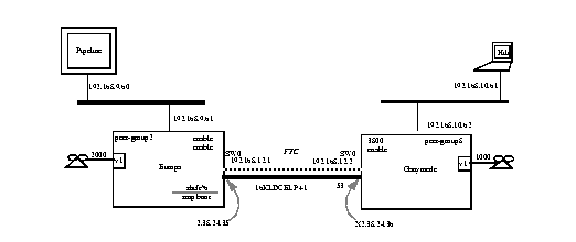 The following simple FTC trunk connection between two 3800 systems has been implemented successfully in the field. Use this as a guideline for your simple network.
