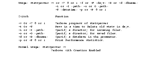You can access on-line help for the statsparser parameter switches by entering the following at the shell prompt: