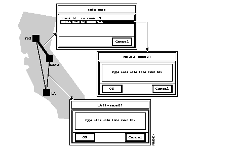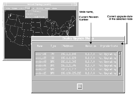 To select objects on the Network Topology map, position the cursor on the object and click the left mouse button. If you click on an IPX, BPX, or access node, you connect to that node and an Administration Window is displayed.
