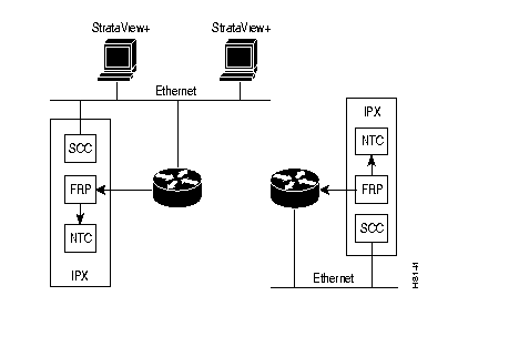 The StrataView Plus workstation can be connected to the LAN via standard 802.3 Ethernet. Ethernet data transmitted through this connection can then traverse routers and frame relay interfaces on an IPX backbone, to form direct connection at the remote node end.
