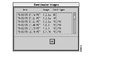 A listing of the BPX/IPX software releases and card firmware versions stored by StrataView Plus can be viewed by selecting the SW/FW option in the Images pulldown menu in the Network Topology Window.