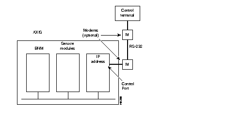 The Control and LAN Ports support Telnet (for CLI), TFTP and SNMP sessions as indicated in Table 3-1. Use of the Control Port is shown in Figure 3-2.