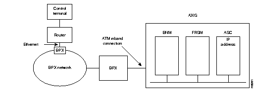 Inband access uses a portion of the bandwidth of the AXIS/BPX T3 connection by reserving a number of ATM virtual connections for network management functions. For this type of connectivity, the control terminal (PC or workstation) is connected through the BPX network and must support TCP/IP and the inband port on the BNM must have been previously configured with an IP address. When using the inband port to enter CLI commands, the user interface prompt appears when the user performs a Telnet login to the port's IP address.