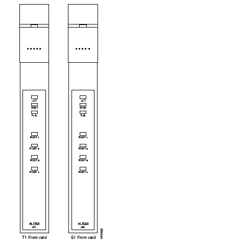 The ATM UNI Service Module (AUSM) is a two-card set consisting of an AUSM function module front card and either a 4 T1 or a 4 E1 line module back card. The E1 line module cards are further categorized by BNC or DB15 connector type.