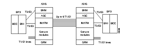 The IMATM performs no AXIS functions and is solely an extension to the BPX BNI card. The BPX can use up to eight T1 or E1 lines as a trunk (instead of a single T3 or E3 line) by using an IMATM card in the AXIS shelf.