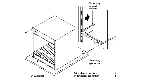 Step 12 Remove the temporary support bracket and spacer bracket from the front of the cabinet.