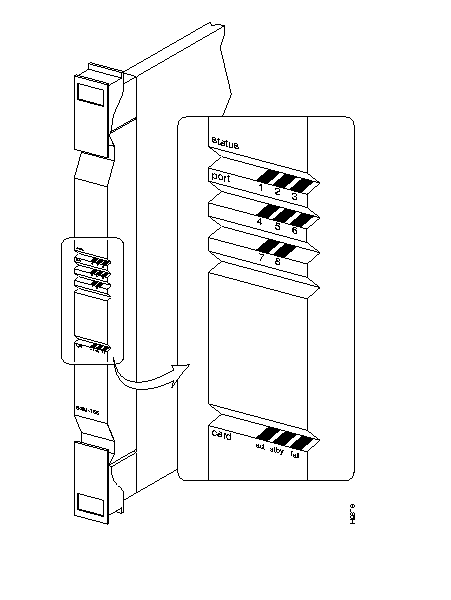 | card | green (act) | Card is on-line and one or more trunks/lines on the card have been upped. If off, card may be operational but is not carrying traffic. |