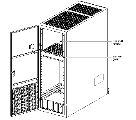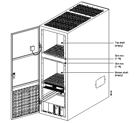 The IPX 16 has one (upper) card shelf. Its card slot numbers are 1 through 16 (left to right when viewed from the front of the cabinet). In addition to an upper card shelf, the IPX 32 contains a bottom shelf with card slots numbered 17 through 32. A front view of the IPX 16 and the IPX 32 appear in Figure 2-9 and Figure 2-10, respectively.