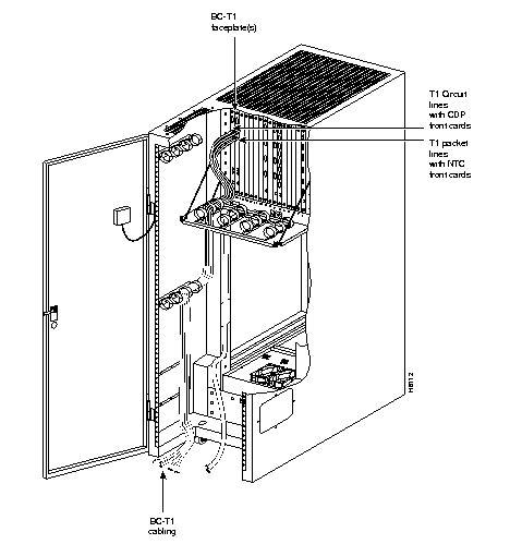 Step 1 Bring each T1 cable through the opening at the bottom of the cabinet then up the side of the card cage (Figure 2-20).