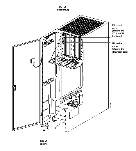 Step 1 Bring each E1 BNC patch cable (or 15-pin cable) through the opening at the bottom of the cabinet then up the side of the card cage (Figure 2-24).