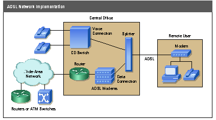 xDSL implementations today take several forms, with broad deployment of the first commercial high data-rate DSL (HDSL) T1 replacement solutions, and initial asymmetric DSL (ADSL) trials (see "What Is an xDSL," below). Remote user options may be a combination of PC network interface cards (NICs), xDSL modems, and Ethernet bridges and routers. These devices connect to xDSL modems at the telephone company central office, which in turn connect to Internet or intranet services over high-speed WAN services such as Frame Relay or ATM.