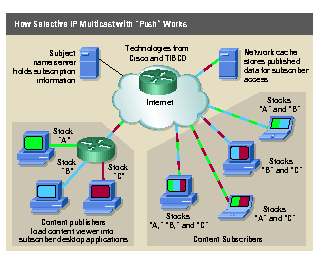 These factors prompted Cisco to invest in TIBCO Software, a Palo Alto, California-based provider of publish/subscribe -- or "push" -- software that contains sophisticated filtering technology. Push applications enable data to be automatically distributed to users of IP networks such as the Internet without those users having to request the information.