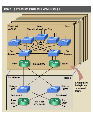 Meanwhile, in a recent major upgrade of its LANs, the Toronto-based carrier has leveraged the Cisco Catalyst® 5000 multimedia switch to migrate thousands of users from shared Token Ring LANs to switched Ethernet and Fast Ethernet networks to relieve network bottlenecks and free up user access to resources.