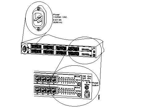 Figure 15-1 shows a rear view of the WS-C1400 CDDI/FDDI concentrator.