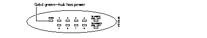 After connecting network devices to the hub ports, check the corresponding port LEDs (labeled 1 through 8) on the front and back panels. The color and blinking pattern of the LEDs indicate the activity for the corresponding hub port.