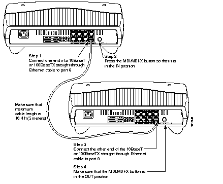 Note Although the following figure shows how to stack hubs, these instructions also apply to other Cisco products designed to be stacked with the hub, except for the Cisco 1600 series router.