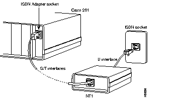 Step 5 If you are using the Cisco 201, you might need to use an NT1 device. Check with your ISDN provider. If your system requires an NT1, use the cable supplied with the Cisco 201 to connect your ISDN Adapter to the S/T interface on the NT1. Then connect the NT1 to the ISDN socket according to the NT1 documentation. See Figure 1-4.