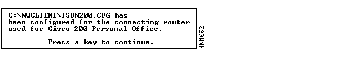 Step 3 Press any key to continue. Proceed to the section "Configuring the Connecting Router" later in this chapter.