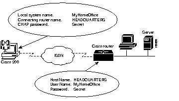 Figure A-1 illustrates the authentication configuration for the connecting router.
